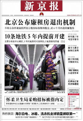 《新京报》是光明日报和南方日报两大报业集团联合主办的综合类大型城市日报,于2003年11月11日正式创刊,是中国第一次两个党报报业集团合作办报,是中国第一家得到国家有关部门正式批准的跨地区经营的报纸,是一份高度密集覆盖北京市场的强势新主流纸质媒体。